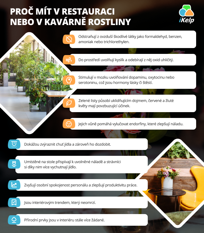 V prostoru provozovny je důležité, aby se v ní zákazníci cítili dobře. Jednou z cest, jak toho dosáhnout, je umístit do ní rostliny. Ty mají na člověka prokazatelně pozitivní vliv. Jaké jsou hlavní výhody květinové výzdoby v restauraci nebo kavárně?