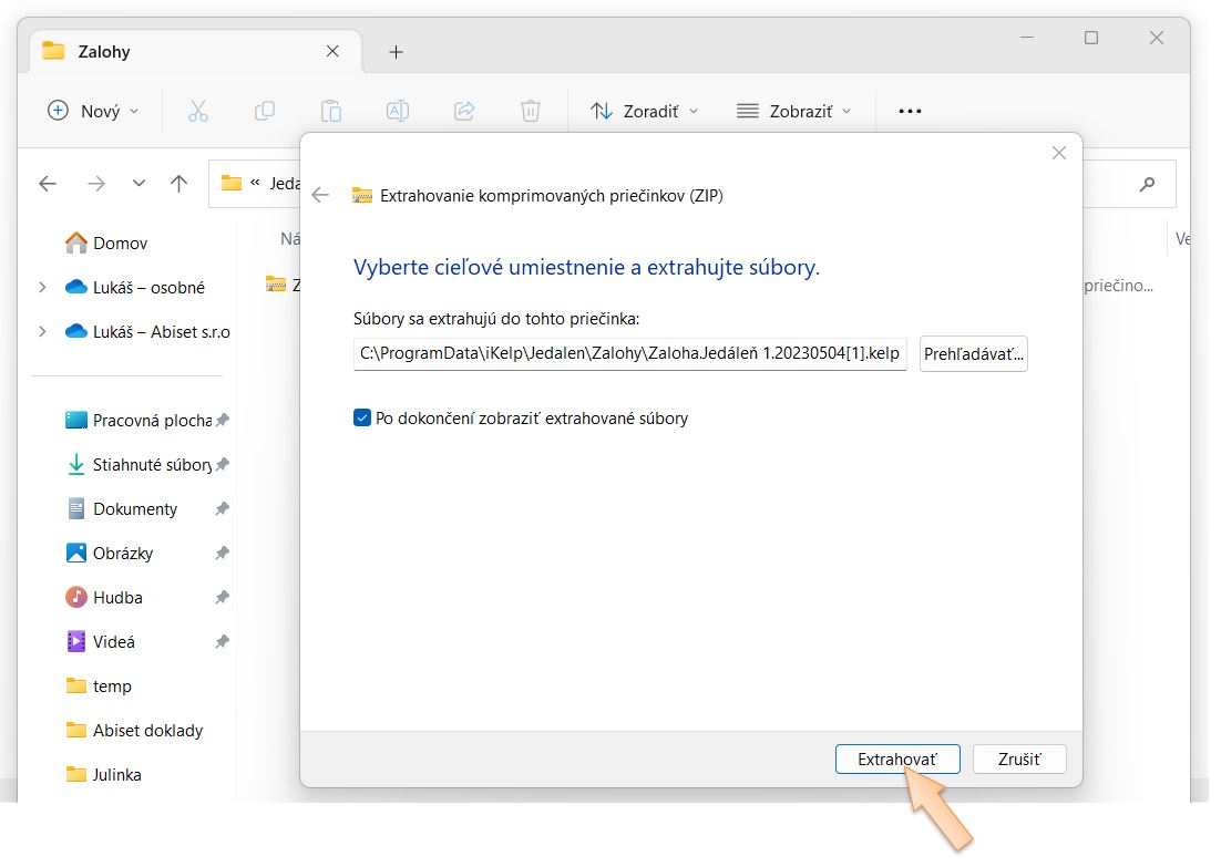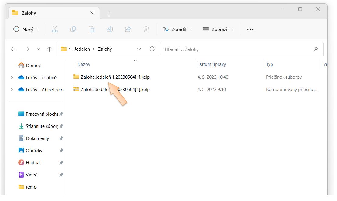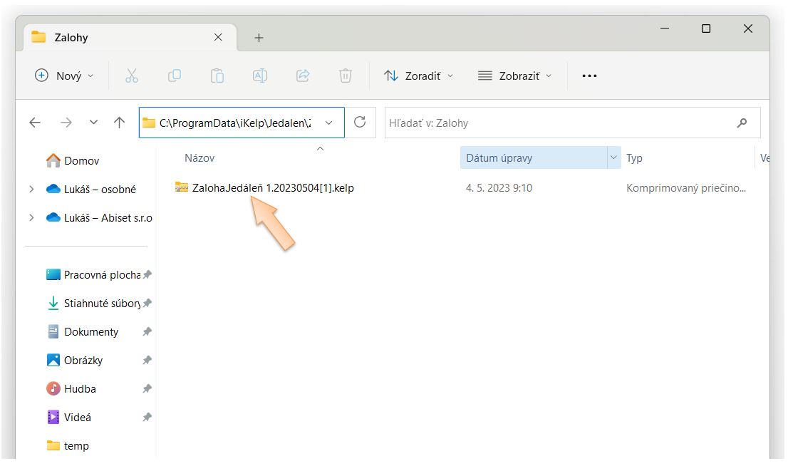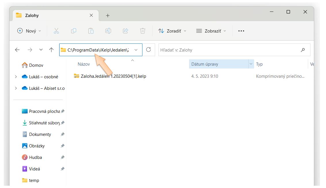 1. Ak nie je nastavené inak, zálohy sa ukladajú do priečinka C:\ProgramData\iKelp\Jedalen.