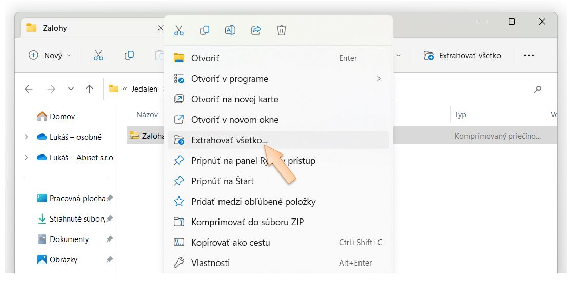 3. Kliknite na Extrahovať všetko. Vytvorí sa adresár, v ktorom bude rozbalená záloha samotnej databázy.