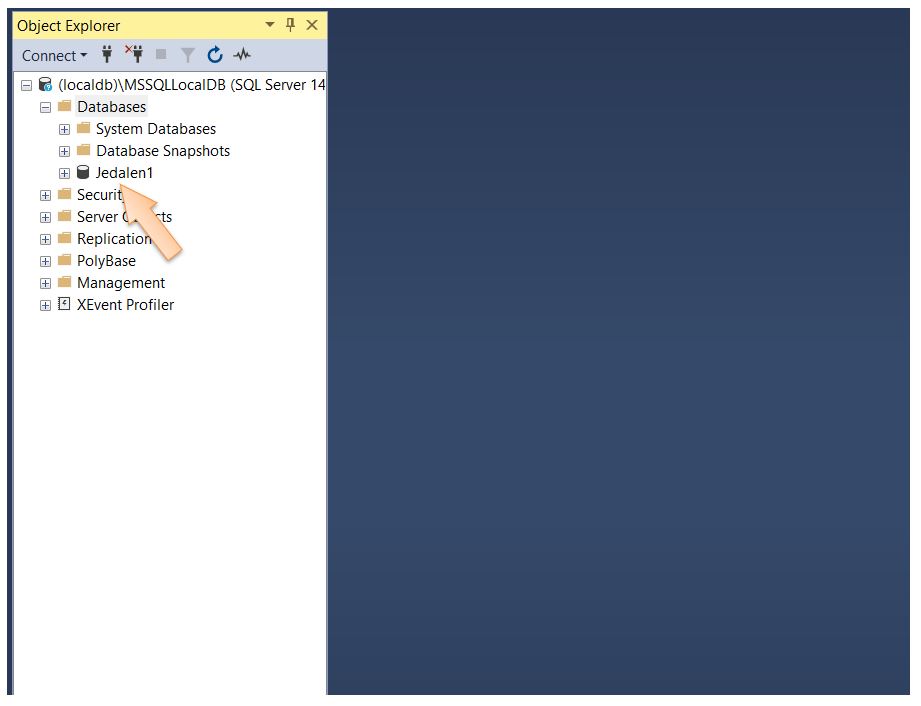 2. V zobrazenej ponuke kliknite na databázu Jedalen1pravým tlačidlom myši.