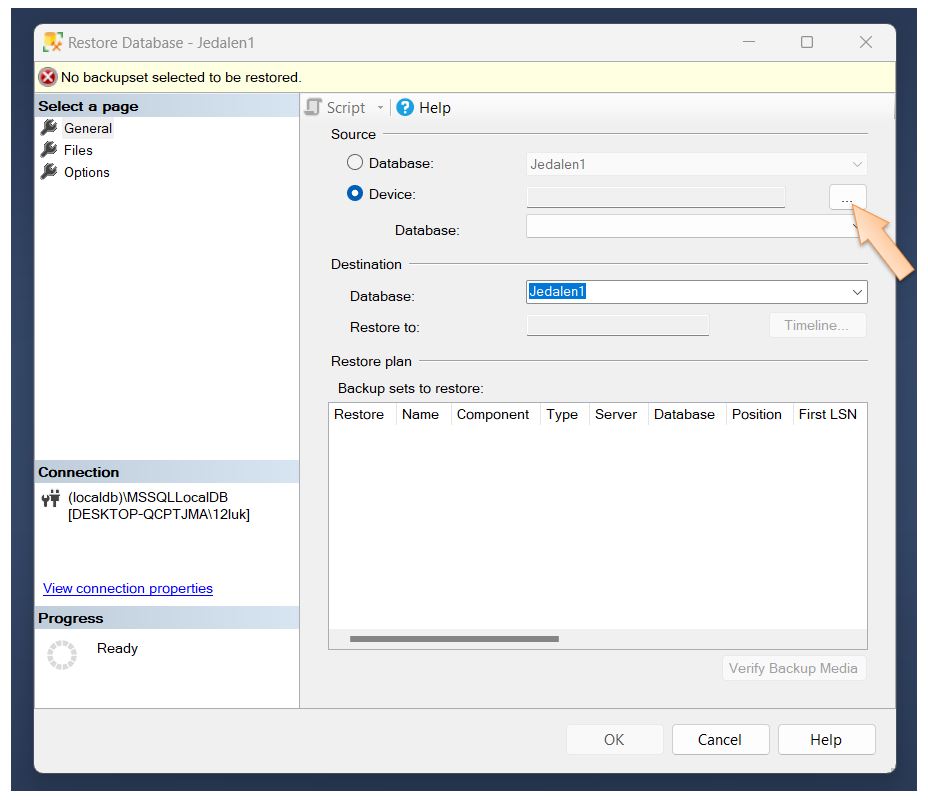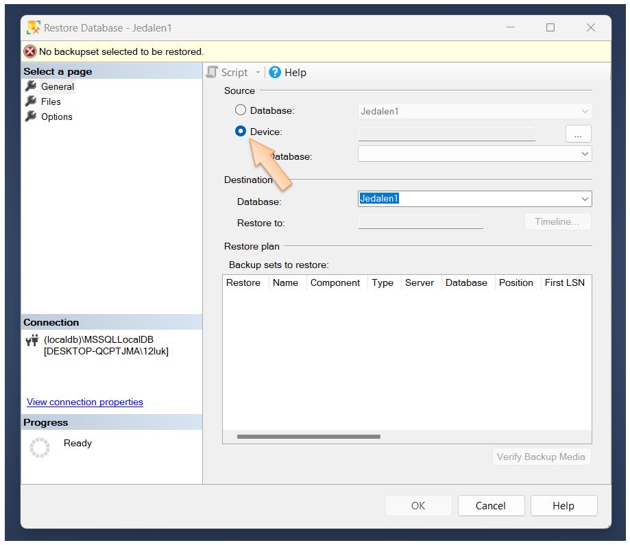 4. V časti Source vyberte možnosť Device a kliknite na ikonu ... pre výber zálohy.