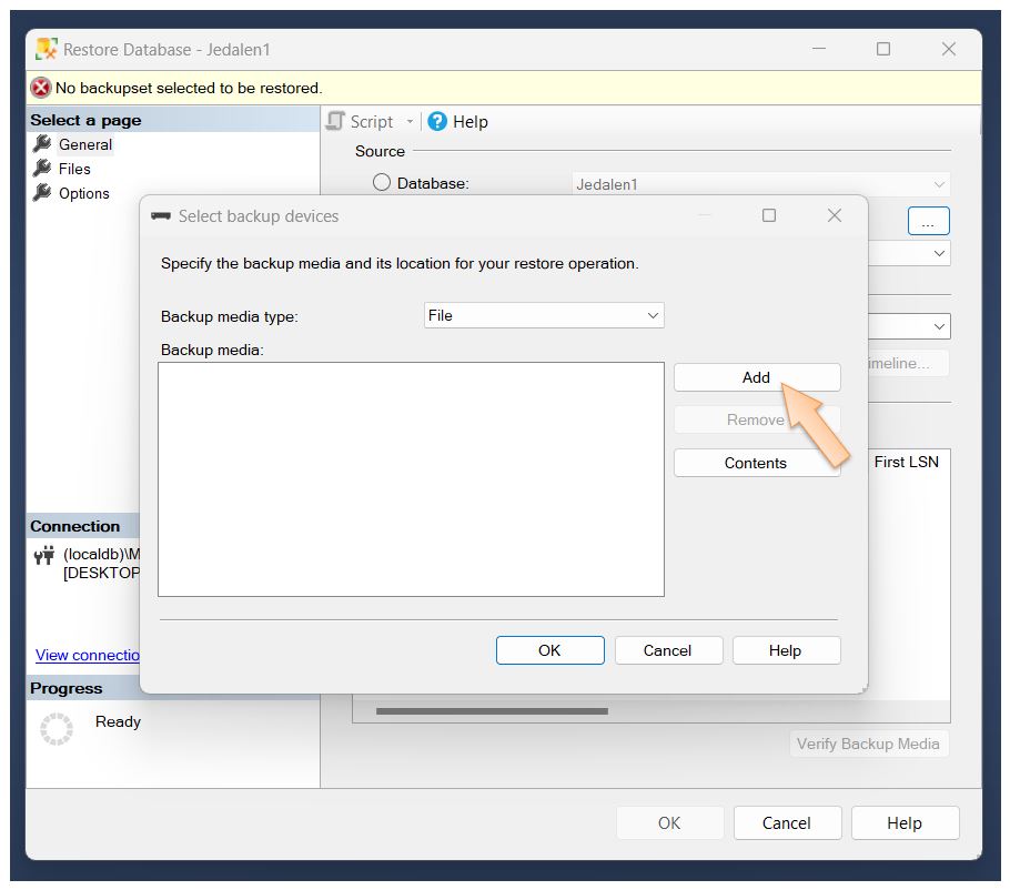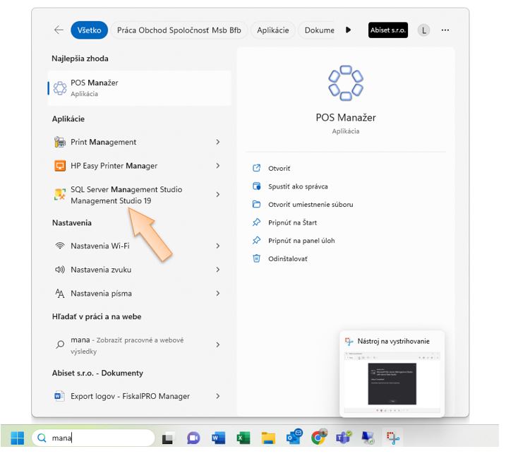 4. Spustenie SQL Management Studia pre vykonanie obnovy databázy zo zálohy