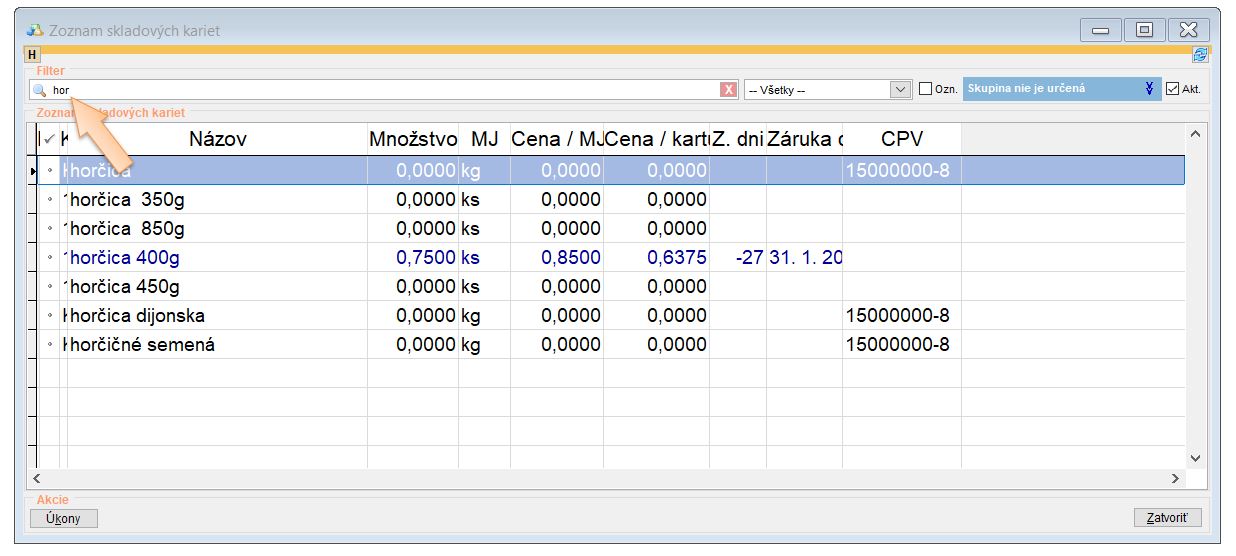 - Stav skladových zásob. - ako už bolo spomenuté, počiatočné stavy na kartách sú do aplikácie prenášané pomocou príjemky, do ktorej je možné vstúpiť, a v prípade zistenia nezrovnalostí je možné túto príjemku upraviť.