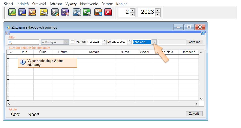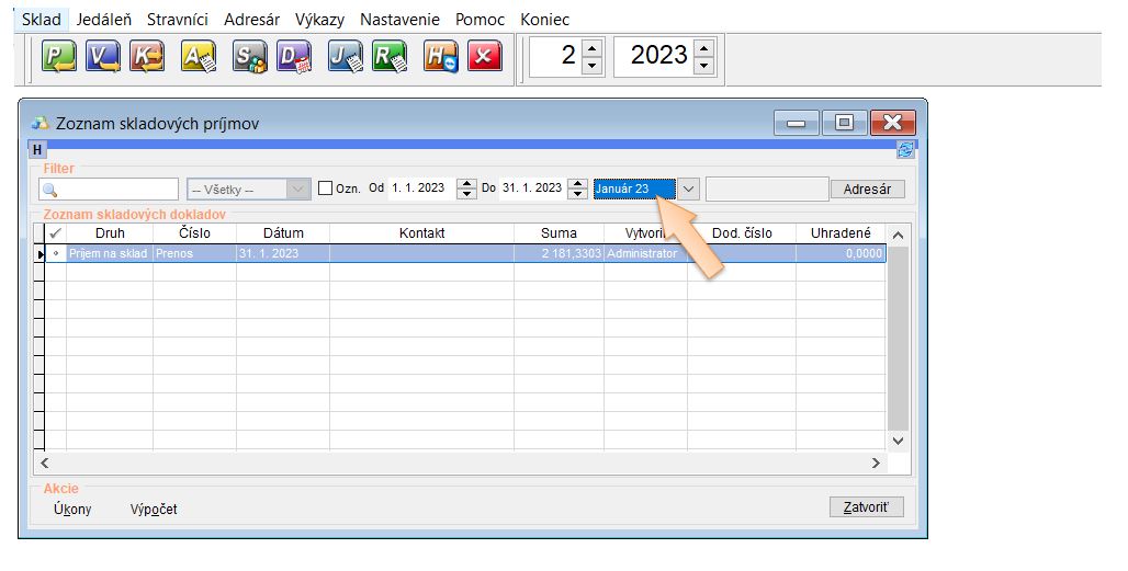 - Počiatočná príjemka sa vytvára k staršiemu dátumu teda k mesiacu, ku ktorému bola vytvorená obratová súpiska. Je potrebné si nastaviť v zozname príjmov zobrazenie všetkých dokladov, nie len aktuálneho mesiaca , lebo sa príjemka nezobrazí.