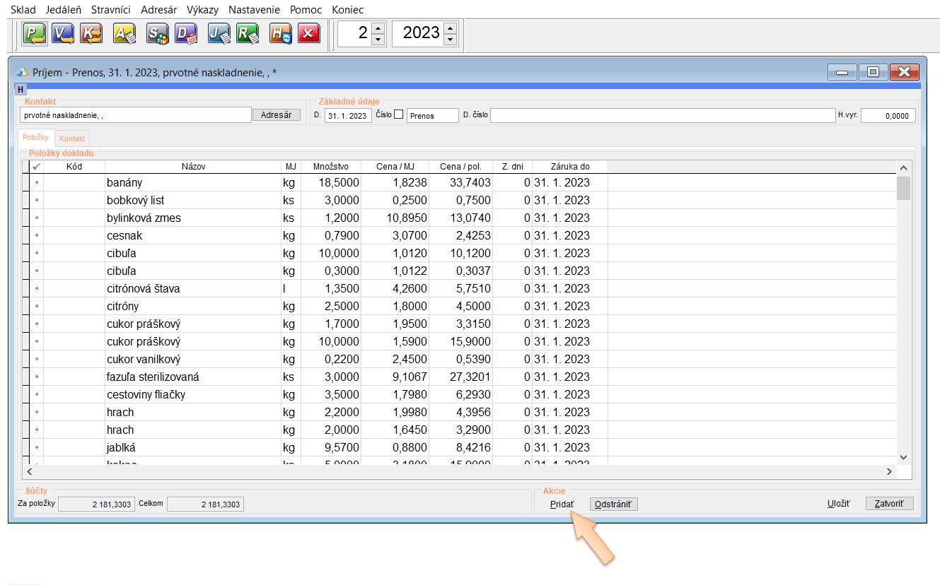 - Vytvoriť počiatočný stravný list ku koncu predchádzajúceho mesiaca od ktorého pokračujete v evidencii, kde sa nahodí zostatok.