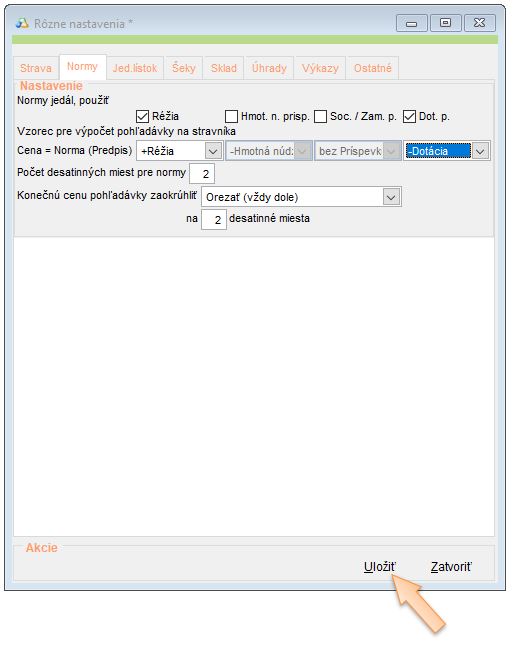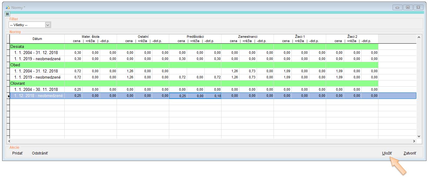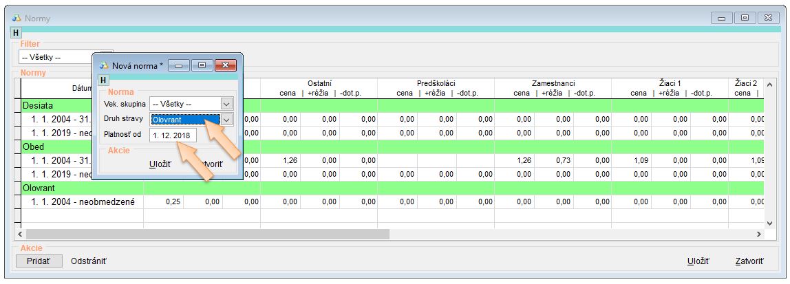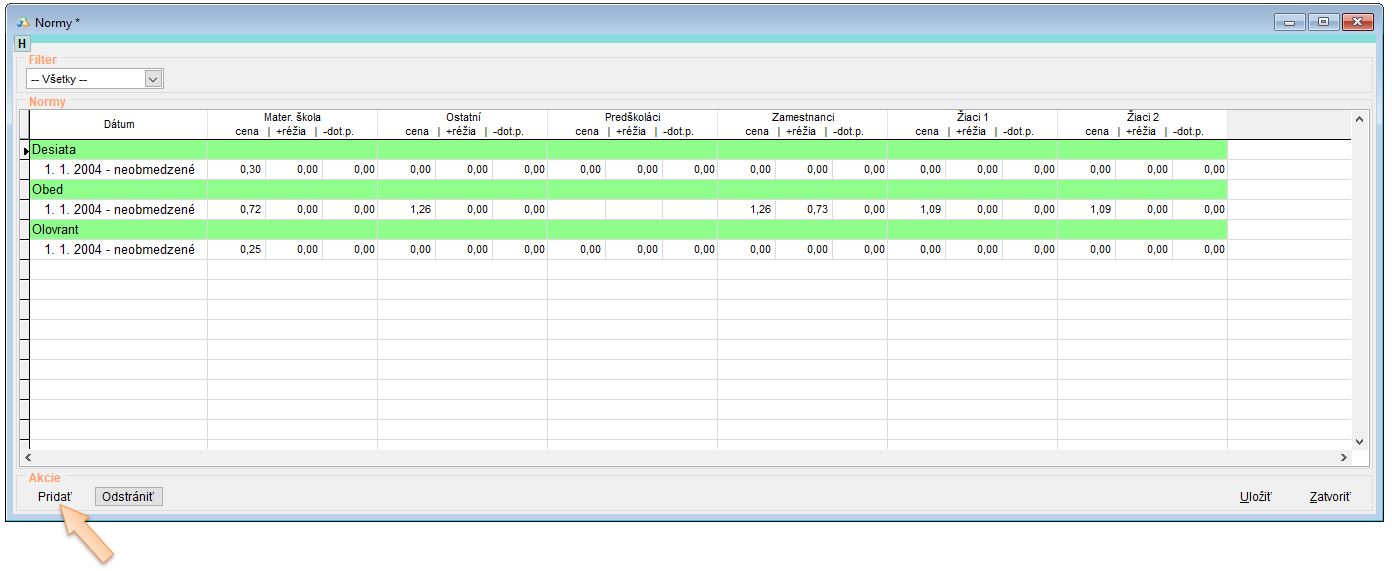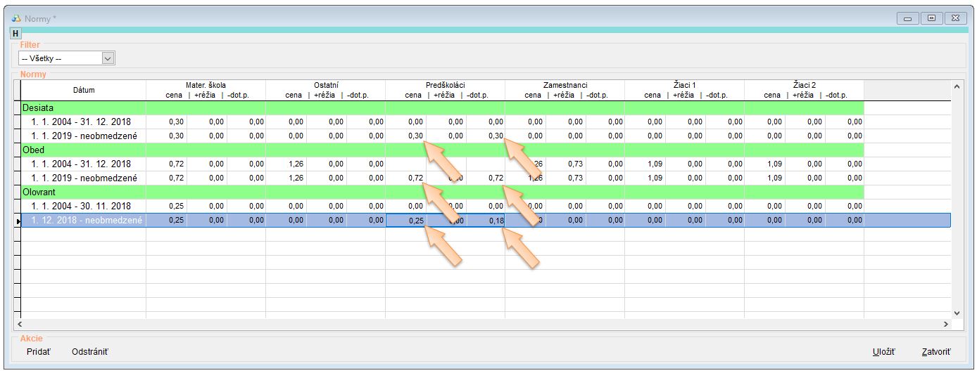 - Normu vytvorte pre všetky druhy stravy. (Desiata, Obed,Olovrant)