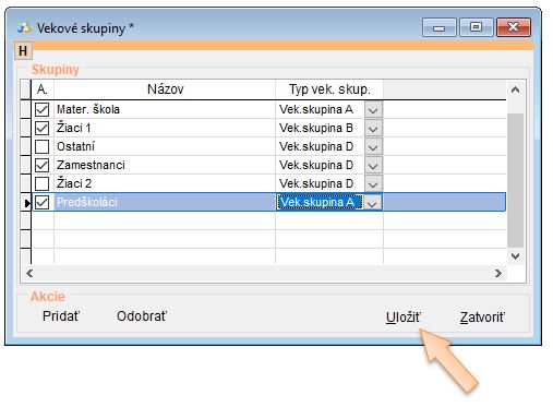 - Názov vekovej skupiny zadajte napr. "MŠ Predškoláci".