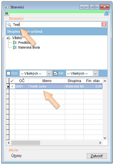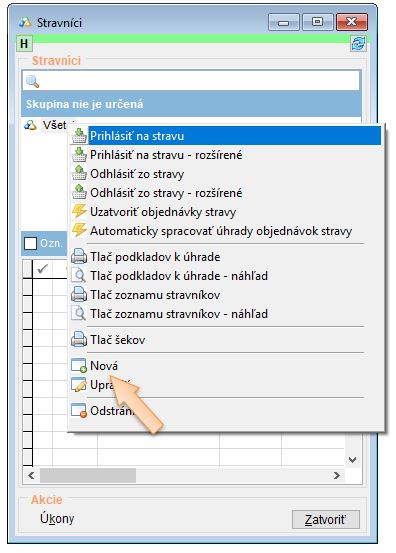 - Vyhľadajte stravníka a otvorte ho na úpravu. (dvojklikom, tlačidlom F4, alebo tlačidlo Úkony - Upraviť)