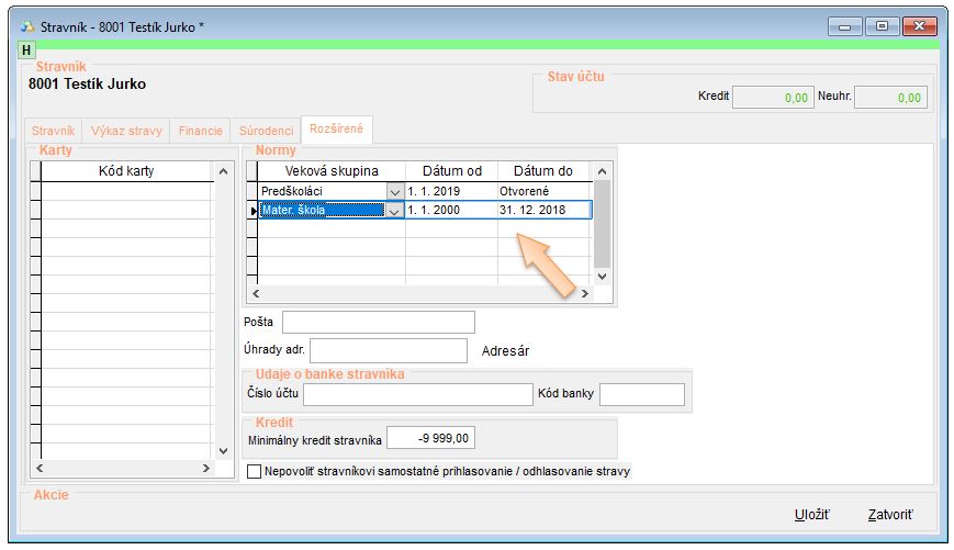 Viac informácií o zmene vekovej skupiny sa dozviete v návode Zmena vekovej skupiny stravníka.