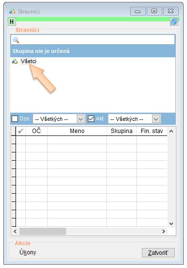- Kliknite na tlačidlo S (Stravníci) na nástrojovej lište.