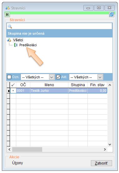3. Krok: Vytvorenie skupiny stravníkov Predškoláci