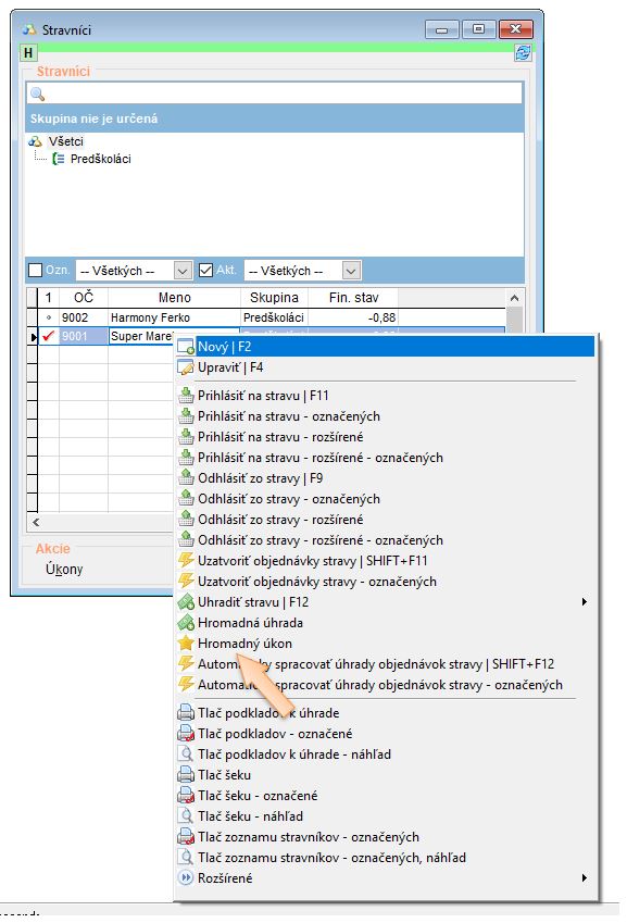 - Otvorte si zoznam stravníkov. (Tlačidlo S na nástrojovej lište.)