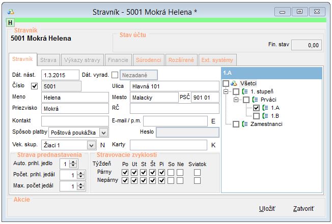 • V okne Stravník vyplňte všetky informácie o danom stravníkovi.
