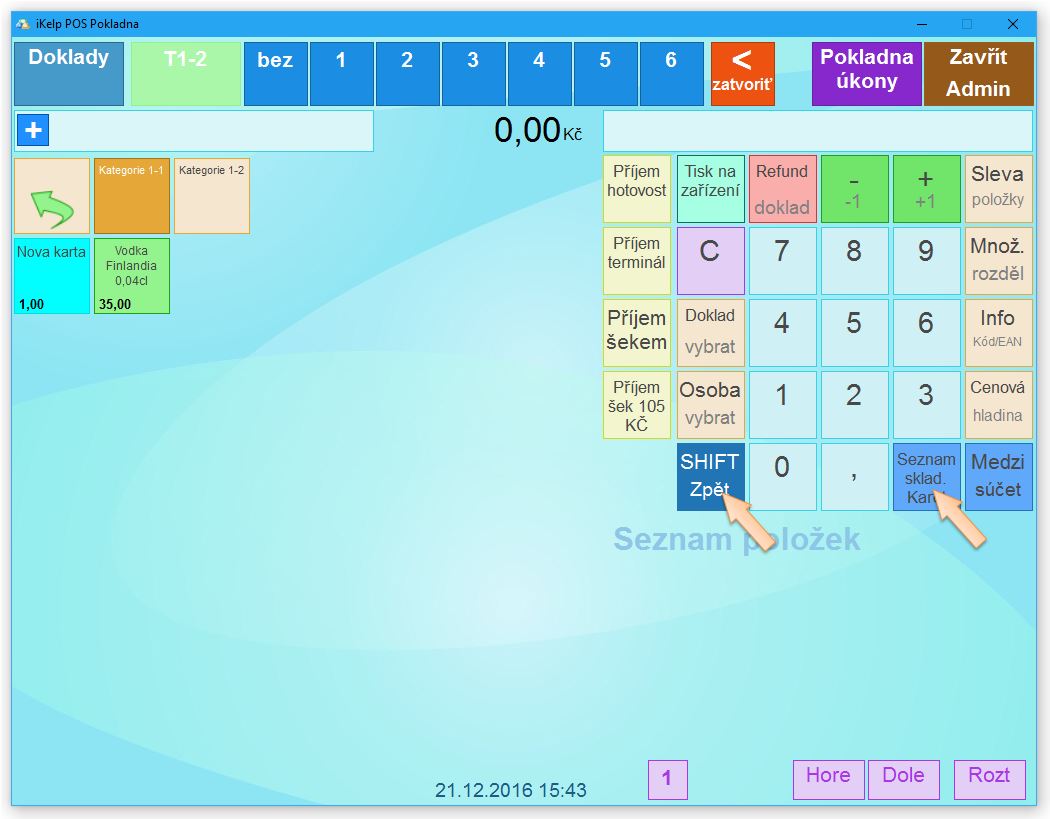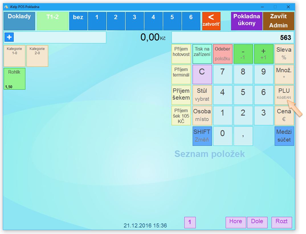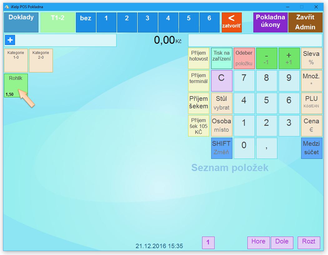 V tomto návodu vám vysvětlíme, jakým způsobem je možné přidávat položky do prodeje v aplikaci iKelp Pokladna. Aplikace umožňuje různé způsoby přidávání položek do prodeje a dále vám jednotlivé možnosti blíže popíšeme. Aby bylo možné položku na doklad přidat, je potřebné spustit aplikaci a otevřít nový doklad. V případě restauračního režimu aplikace je potřebné si vybrat místnost a následně stůl, na kterém se má nový doklad vytvořit.