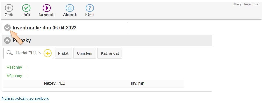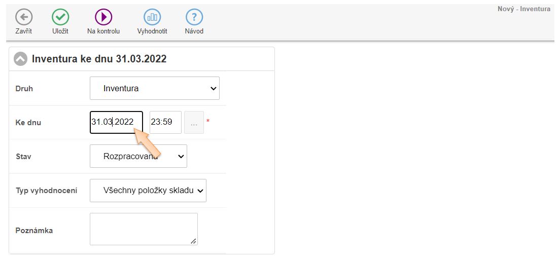 4. Zadejte datum, ke kterému má být inventura vytvořená.