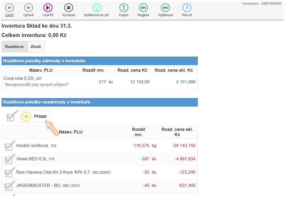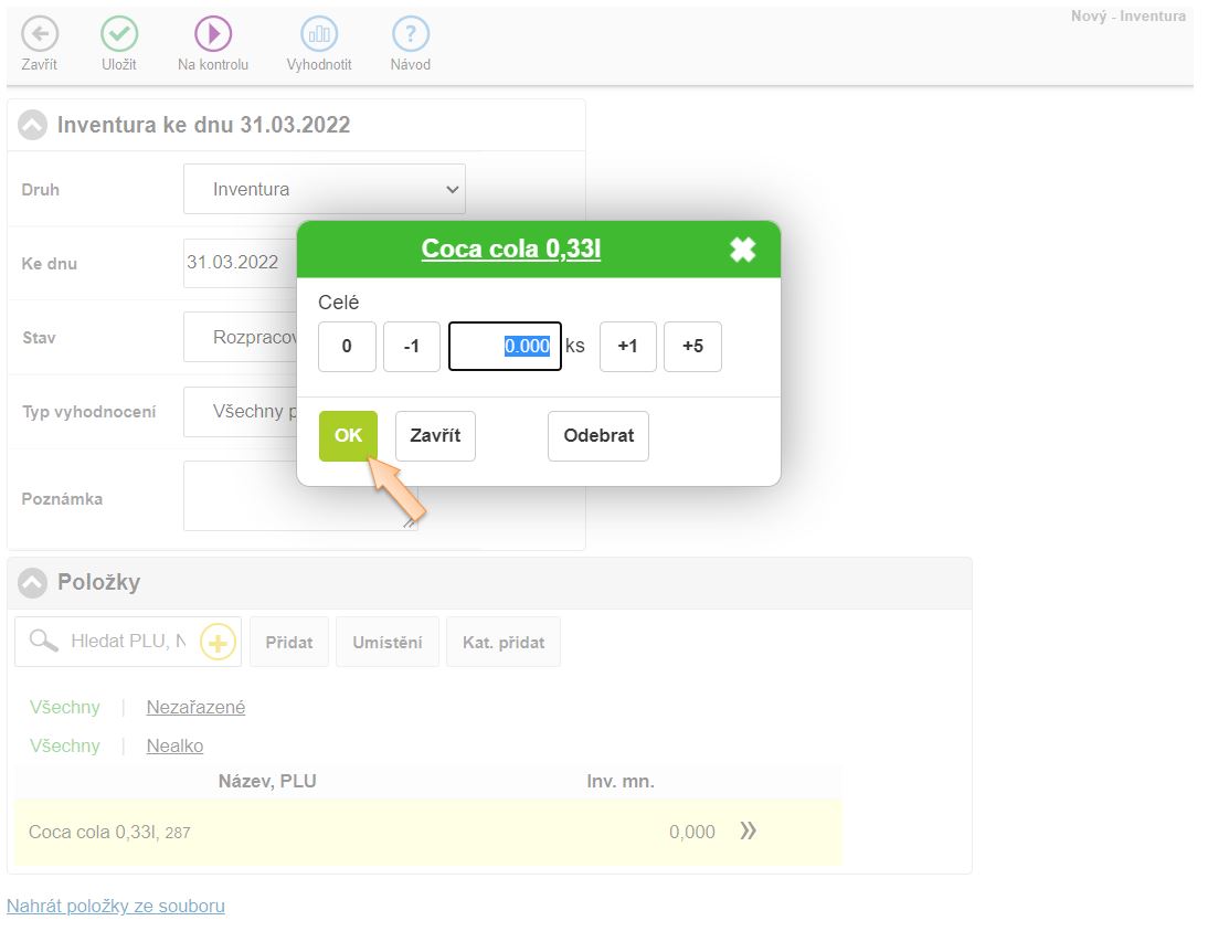 5. V části položky přidejte do inventury kteroukoliv položku s nulovým množstvím.