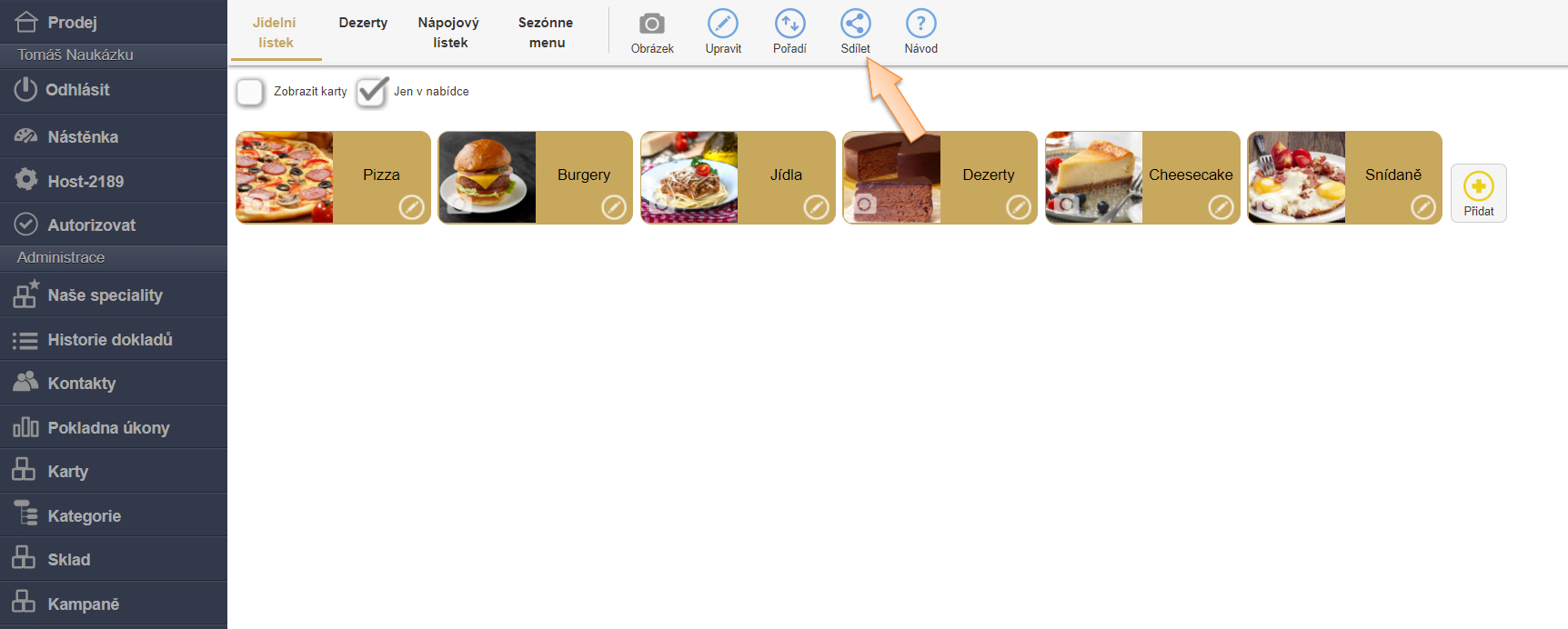 V aplikaci si můžete nadefinovat nabídku menu nebo rozvozu na základě aktuálně nabízených jídel. Pokud máte vlastní web, není potřeba si na něm zvlášť nastavovat nabídku jídel v jídelním lístku, nebo řešit nabídku pro online objednávání. To vše si nastavíte v aplikaci a automaticky se zobrazí také u vás na webu.