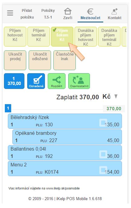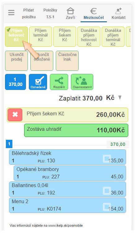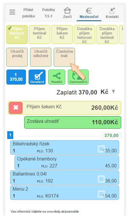 Částkové - kombinované platby v iKelp POS Mobile