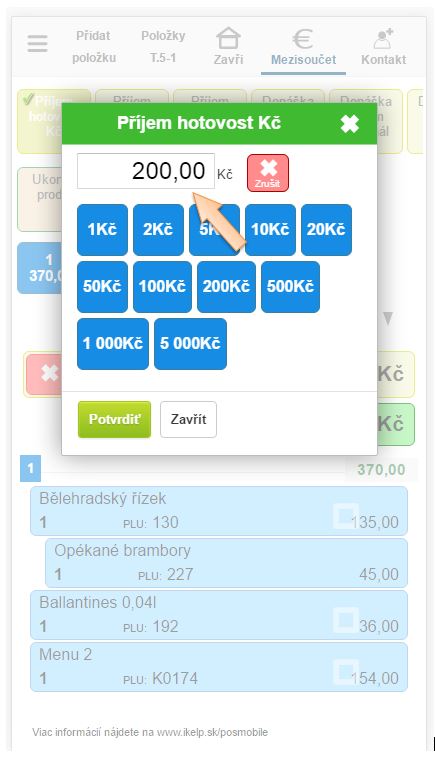 3. Kliknutím na tlačítko Potvrdit potvrdíte příjem od zákazníka.