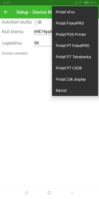 Tento článok vysvetluje konfiguráciou a nastavenia tlačiarní a ostatných periférnych zariadení v iKelp POS Mobile pre Android. Vychádza z predpokladu, že na zariadení už máte napr. zariadenie pre eKasa aktívne. Aplikácia ponúka zoznam zariadení na základe nastavenej legislatívy pre tú danú krajinu. Okrem eKasa tlačiarní, je možné nakonfigurovať ďalšie zariadenia ako bonovacie tlačiarne, externý displej, pokladničnú zásuvku alebo váhy.
