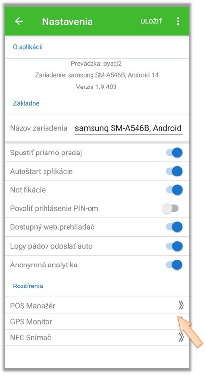 1. Kódy - zajte kód zariadenia podľa predajnej aplikácie. Ak sa jedná o ďalší terminál v poradí, upravte poradové číslo. (Napr. pay2, pay3 a pod...)