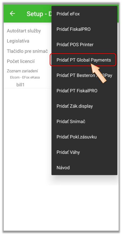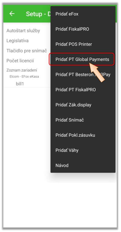 2. Krok: Pridanie zariadenia - platobného terminálu