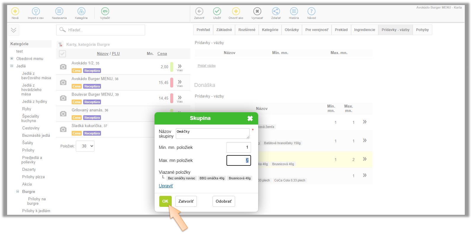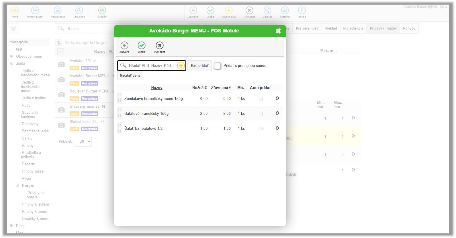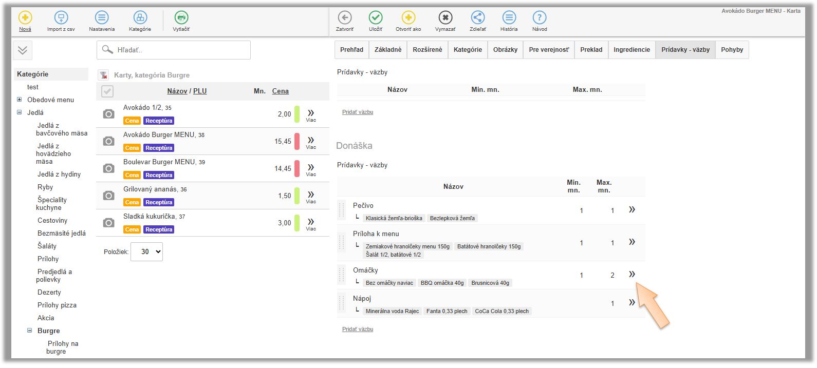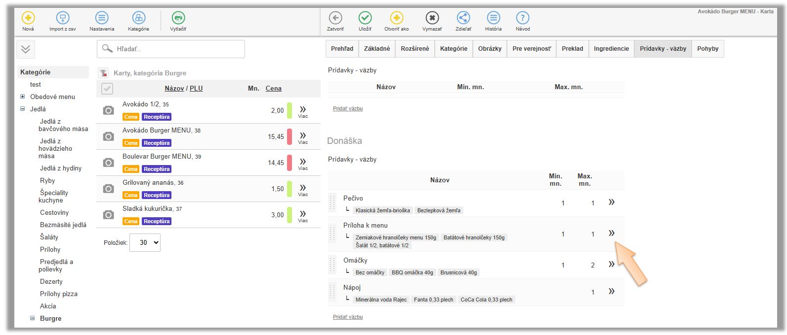 Zároveň je možné definovať viacero kategórií prídavkov alebo priamo na skladových kartách vytvoriť skupiny položiek na doplnenie. Týmto spôsobom môžete rozšíriť variabilitu ponuky pre zákazníka.