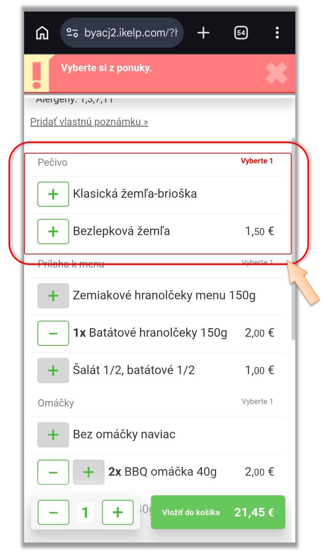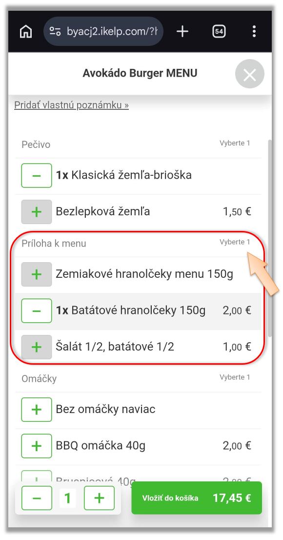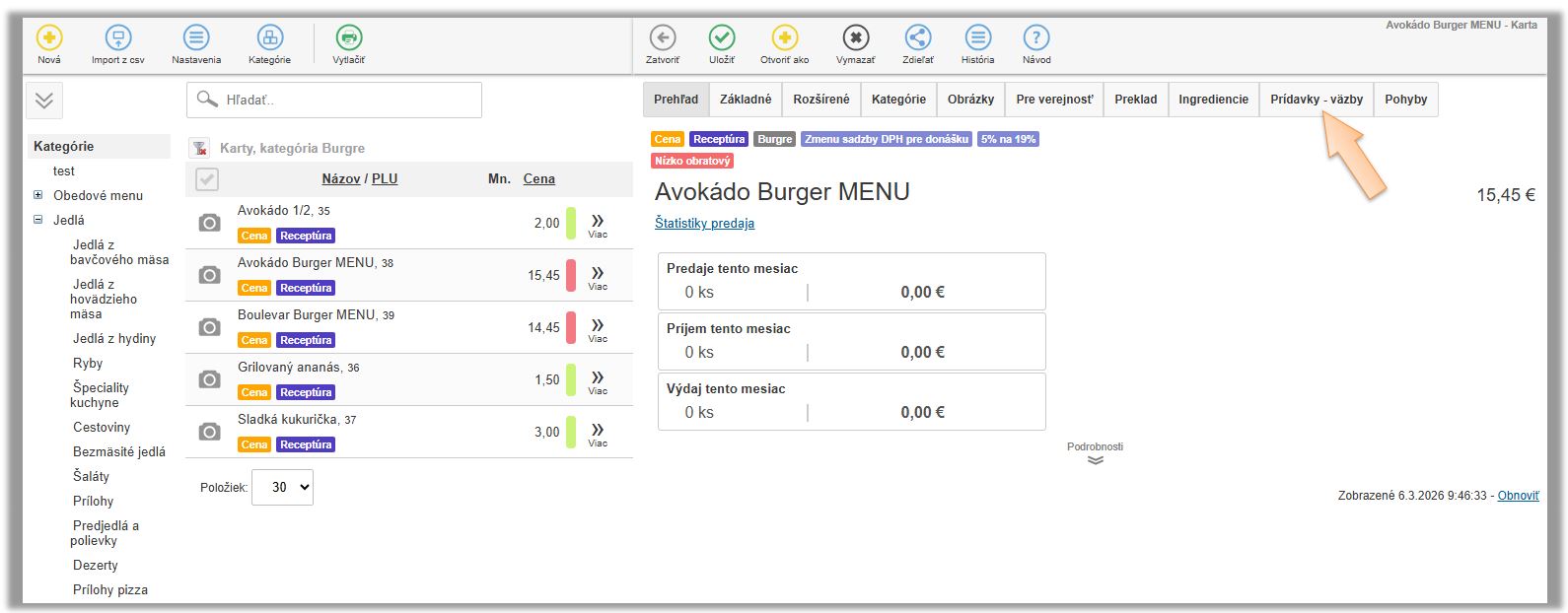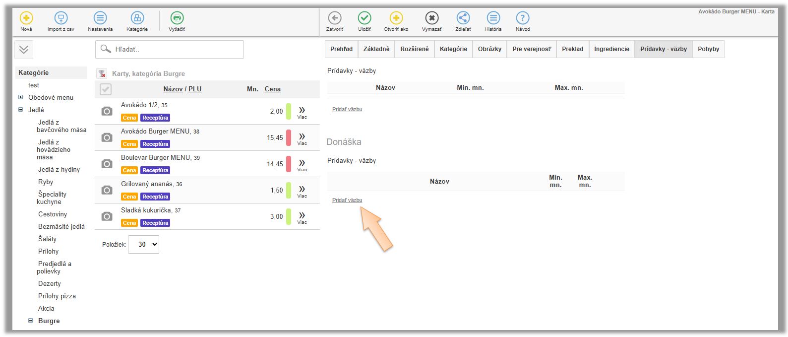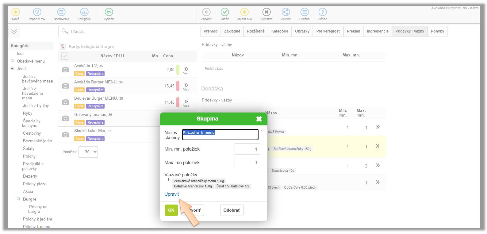 Zároveň je možné definovať viacero kategórií prídavkov alebo priamo na skladových kartách vytvoriť skupiny položiek na doplnenie. Týmto spôsobom môžete rozšíriť variabilitu ponuky pre zákazníka.