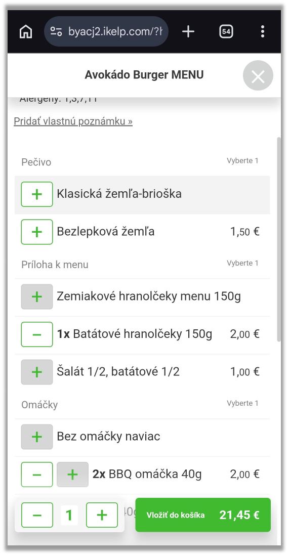 Definované kategórie prídavkov sa následne zobrazujú aj obsluhe pri predaji, čo zrýchľuje obsluhu zákazníka a zároveň umožňuje jednoduchšie pripraviť komplexnejšiu objednávku.