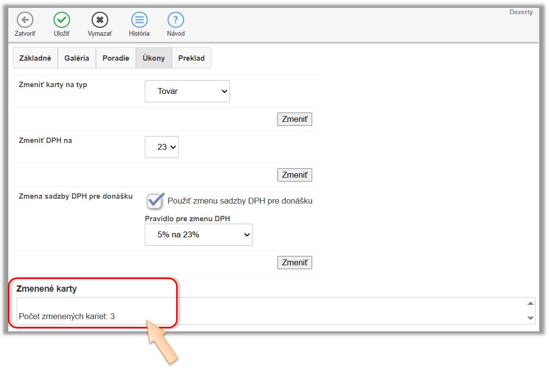 Pri účtovaní na stole, kde je nastavené zmena DPH sa účtuje v prípade, že si zákazník berie tovar so sobou mimo priestorov reštaurácie alebo kaviarne. Pri vyúčtovaní tak systém automaticky na položkách, ktoré majú nastavenú zmenu sadzby DPH túto DPH zmení. (V prípade, že zákazník chce pri objednávke položky kombinovať, časť si zobrať so sebou a časť na konzumovať priamo na prevádzke, je potrebné účtovať takéto položky v dvoch dokladoch, resp. postupovať podľa kroku č. 4 - Účtovanie položiek so sebou a na prevádzke. )