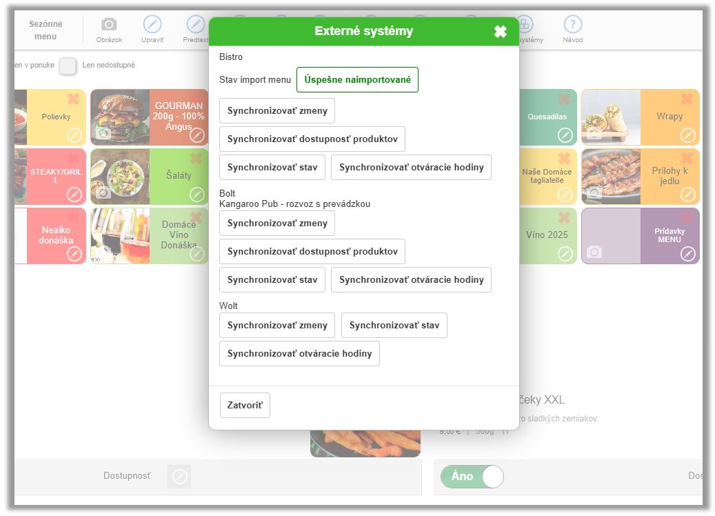 Po vytvorení a nadefinovaní základných nastavení a ponuky, je možné údaje z externýmy systémami zosynchronizovať. Synchronizáciu je potrebné vykonať aj v prípade zmeny cien, doplnenia produktov, obrázkov a podobne.