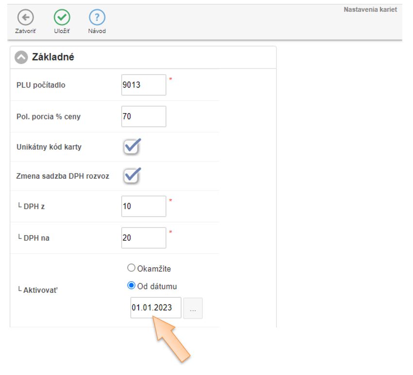 2. Nastavenie automatickej zmeny DPH na kartách na donášku