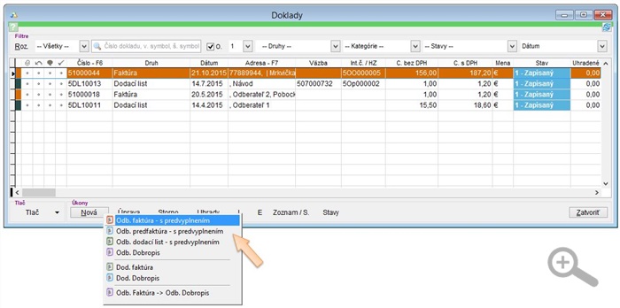 - Následne si vyberte požadovaný druh dokladu, ktorý si prajete z existujúceho vytvoriť.