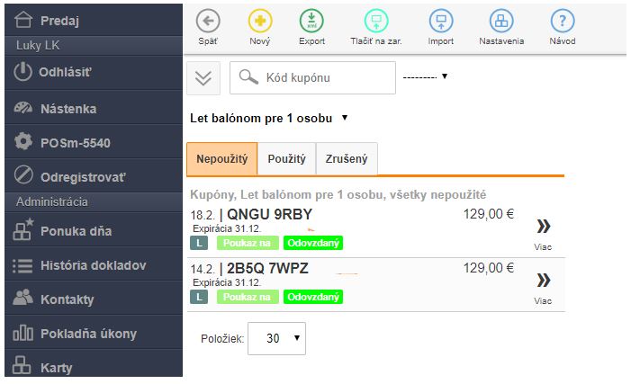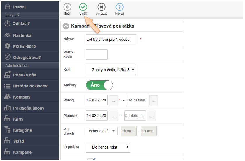 • Po predaji poukazu sa automaticky v danej kampani vygeneruje poukaz s kódom.