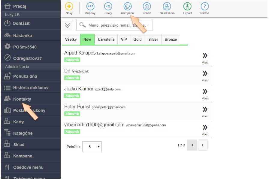 • Zoznam vygenerovaných, a uplatnených kupónov je možné sledovať v menu Kontakty - Kampane.