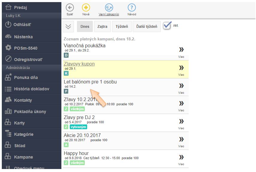 1. Kliknite v menu aplikácie na možnosť Kampane.