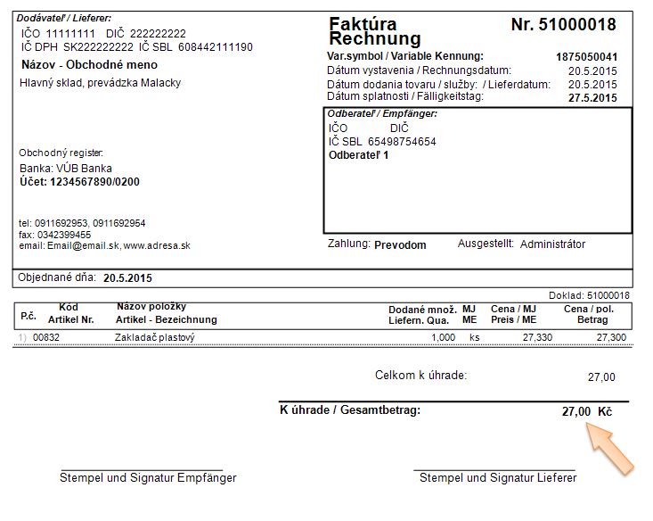 - Nastavte ostatné potrebné údaje na Odb. faktúre ako odberateľa prípadne iné a kliknite na tlačidlo Uložiť.