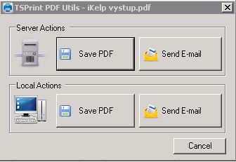 - V zobrazenom okne aplikácie TSPrint vyberte v časti Local Actions -> Send E-mail.