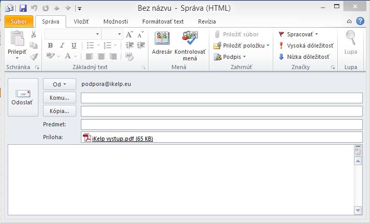- V prípade nainštalovaného poštového klienta (napr. Microsoft Outlook, Mozilla Thunderbird, MailStore ...) sa Vám automaticky otvorí okno na zaslanie nového emailu s pripojenou prílohou.