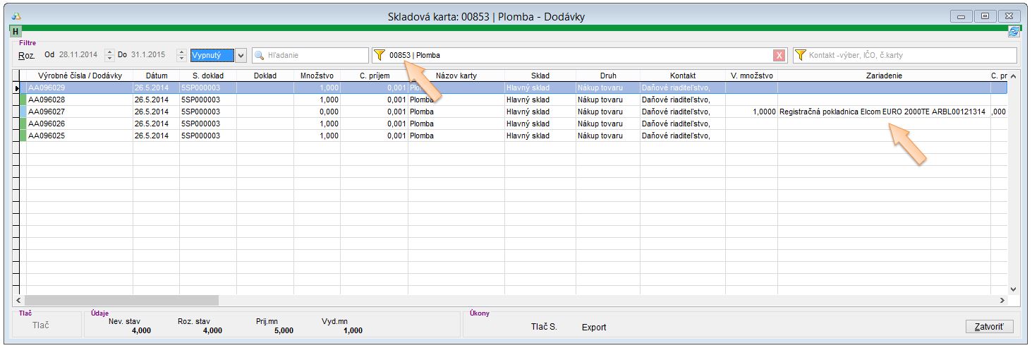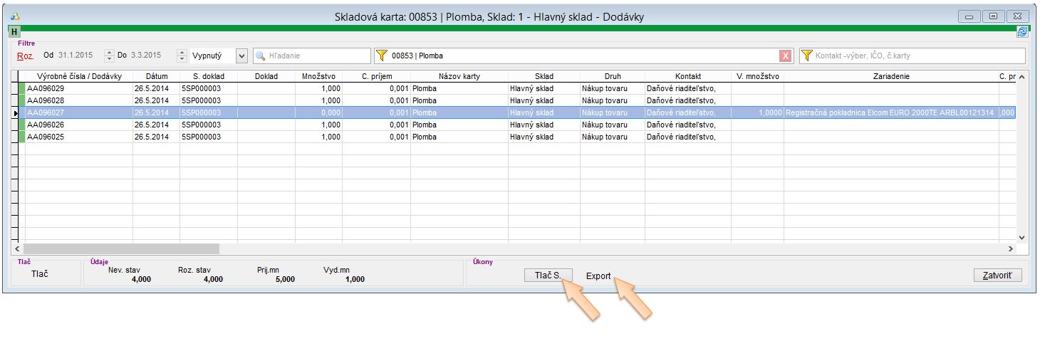 - Vo filtri vyberte skladovú kartu slúžiacu na evidenciu plômb.