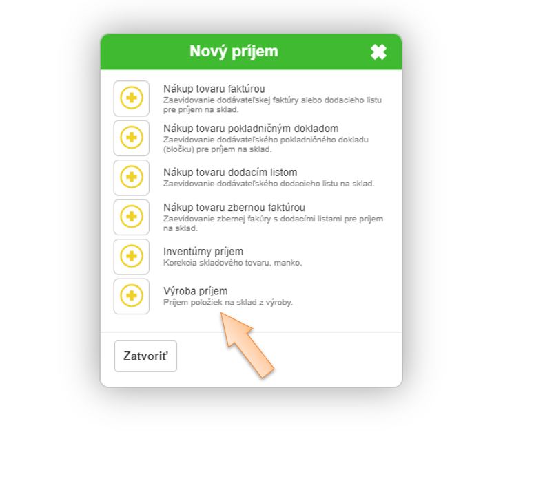 - Kliknutím na + Príjem vytvoríte skladový výdaj.