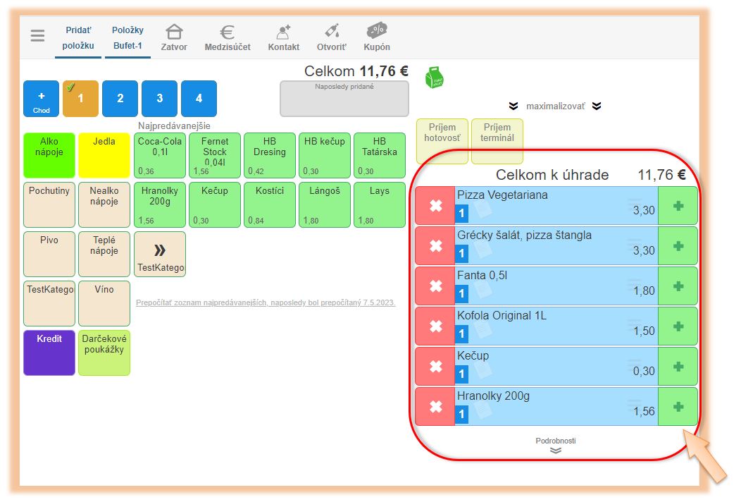 - Obsluha v zozname položiek vidí, ktoré položky už boli z objednávky vydané zákazníkovi. Tieto sú prečiarknuté.