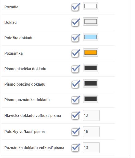 • Písmo položka dokladu - farba písma položky dokladu.