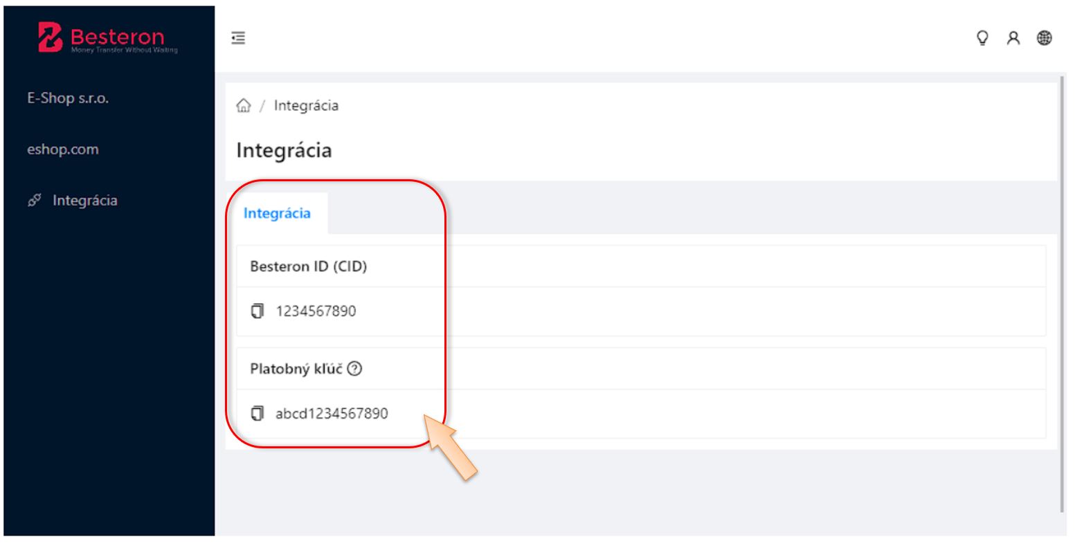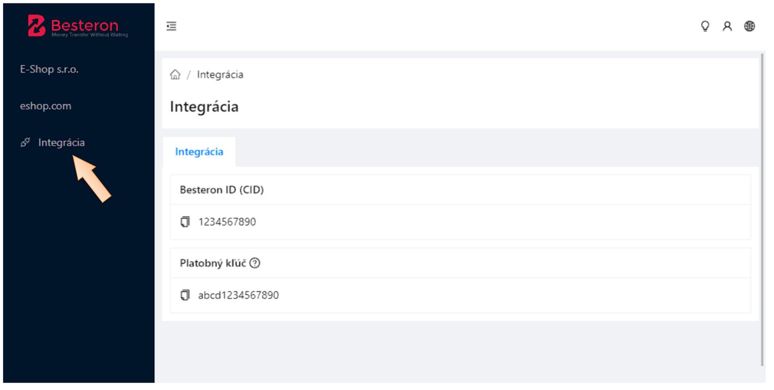 1. Prihláste sa na portál platobnej brány Besteron na account.besteron.com.