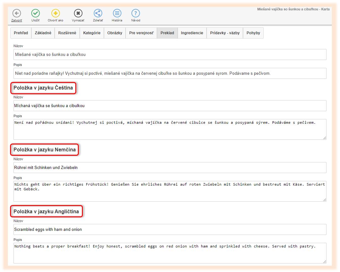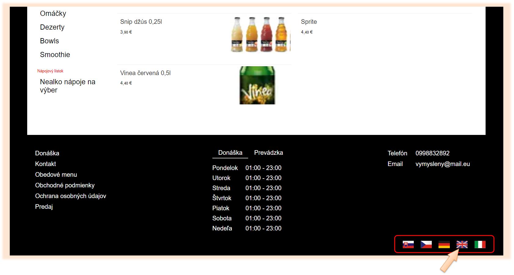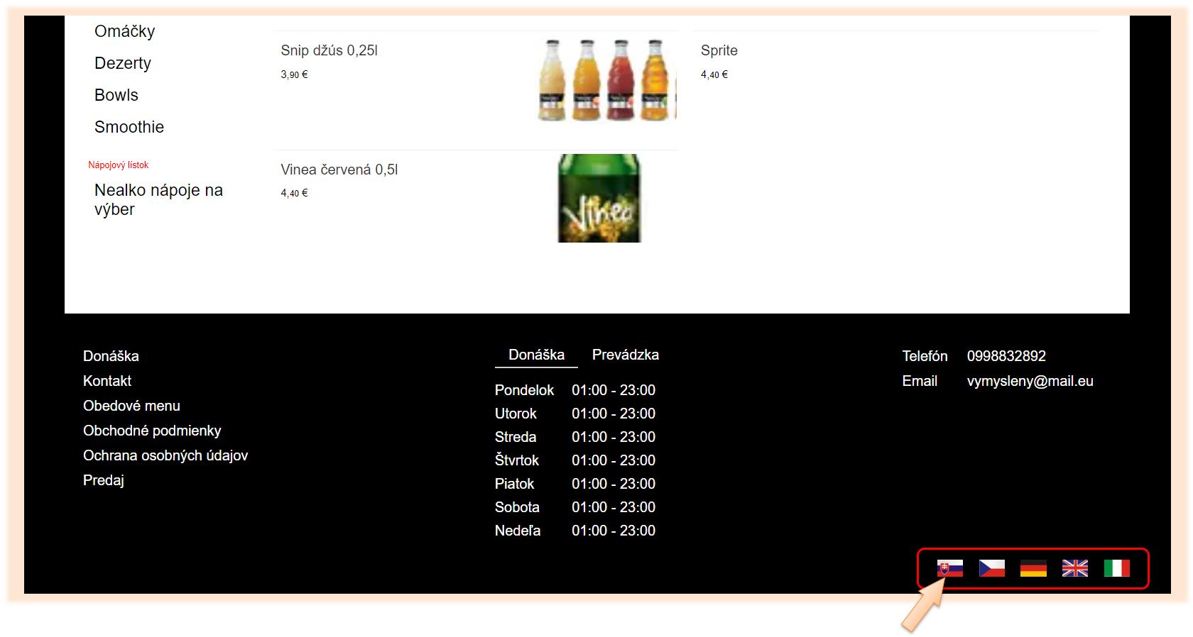 4. Zobrazia sa dostupné / povolené jazyky pre ktoré je možné nastaviť jazykovú mutáciu.