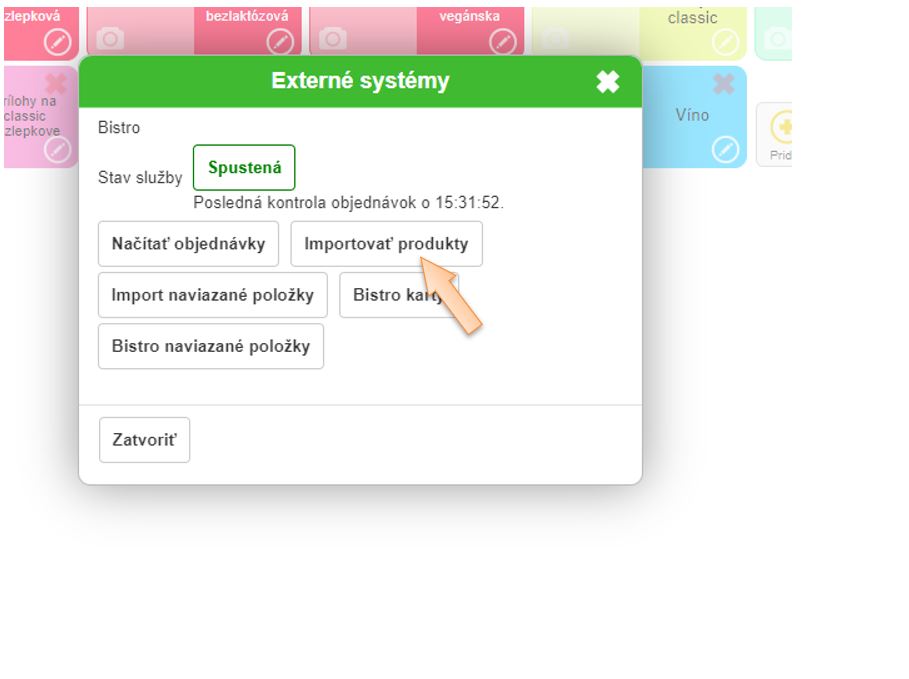 Je potrebné urobiť Importovať produkty ( to sú hlavné produkty)a Import naviazané položky (to sú naviazané položky ako prílohy na pizzu alebo k jedlu, omáčky a pod.)