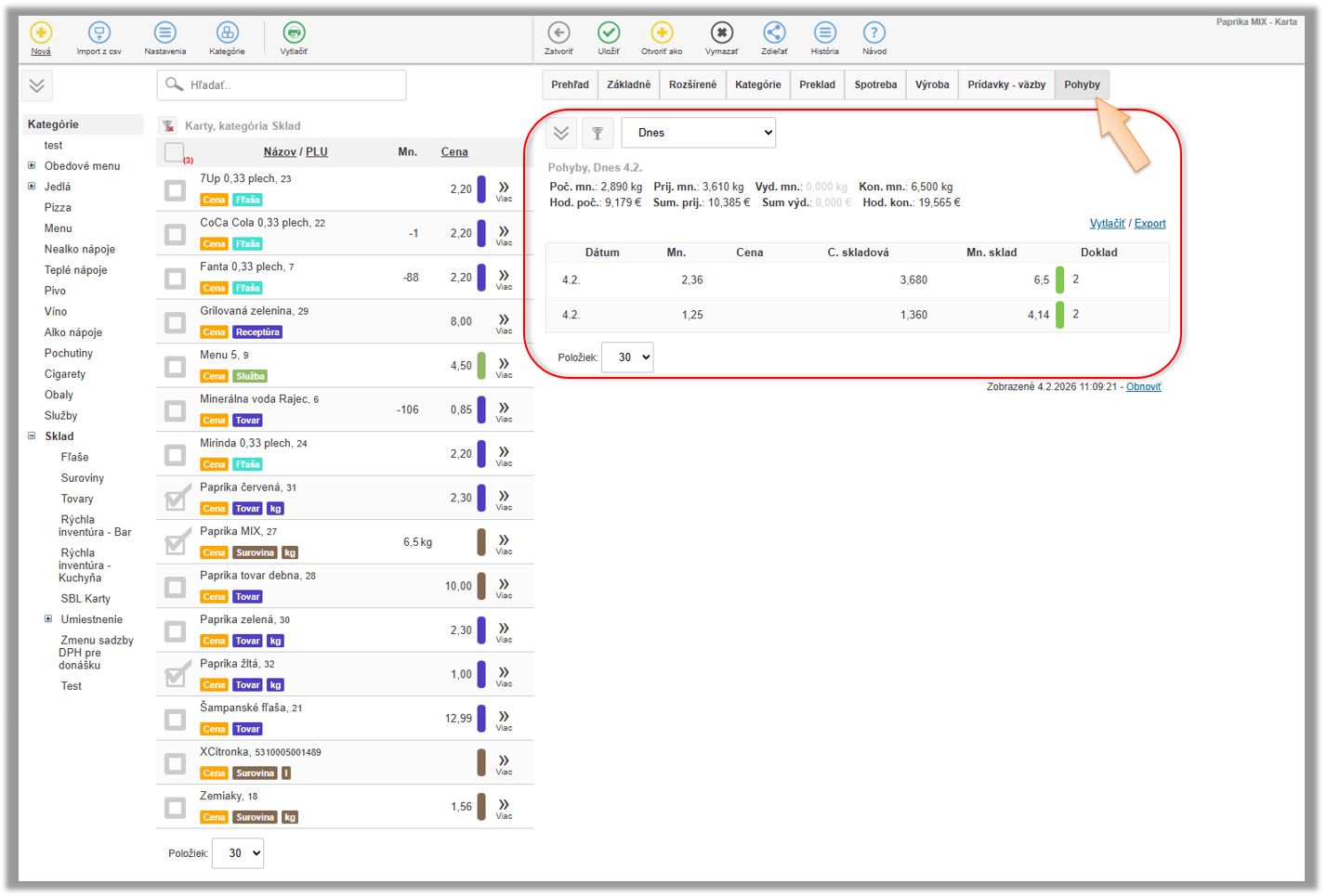 Tento scenár evidencie si opíšeme na konkrétnom príklade papriky. Dodávateľ na doklade účtuje papriku ako rôzne položky podľa farby, napr. paprika červená, zelená, žltá. V skladovej evidencii však má byť tento tovar vedený ako jedna položka. Nie je potrebné evidovať podľa farieb, jednak kvôli rýchlejšiemu odevidovaniu pri inventúre. Nie je to potrebné rozlišovať ani v prípade vstupujúcej suroviny do ďalších receptúr. Evidencia je v rovnakých merných jednotkách, ako je aj následne tovar evidovaný na sklade.