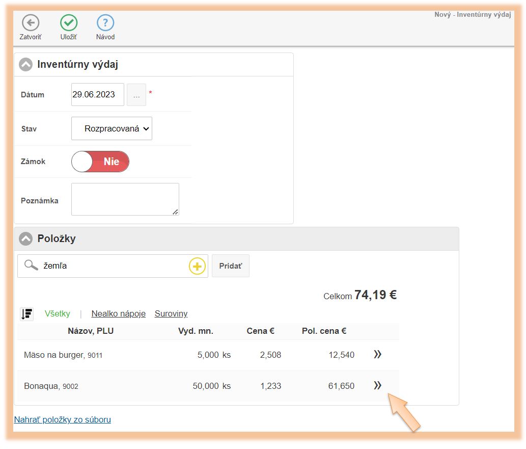 3. Vyberte položky, ktoré chcete vydať zo skladu.