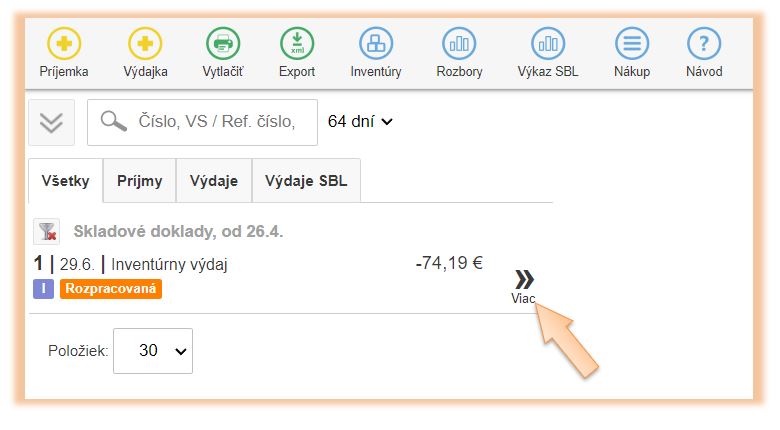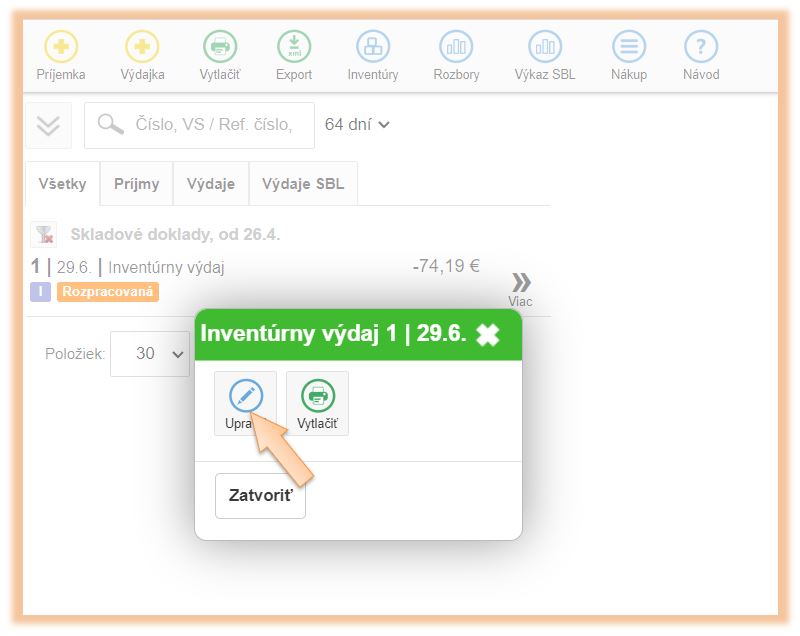 1. Kliknite v menu aplikácie na Sklad.