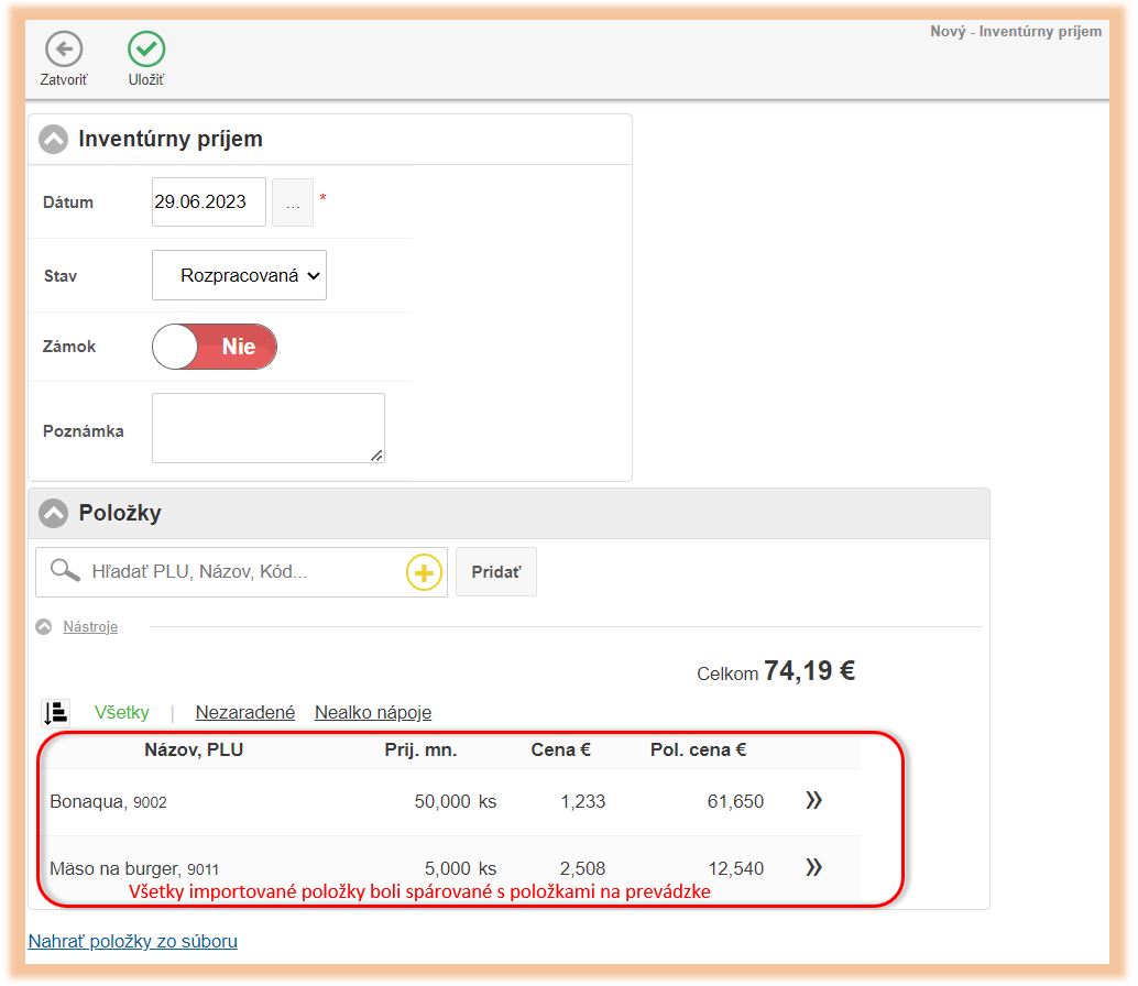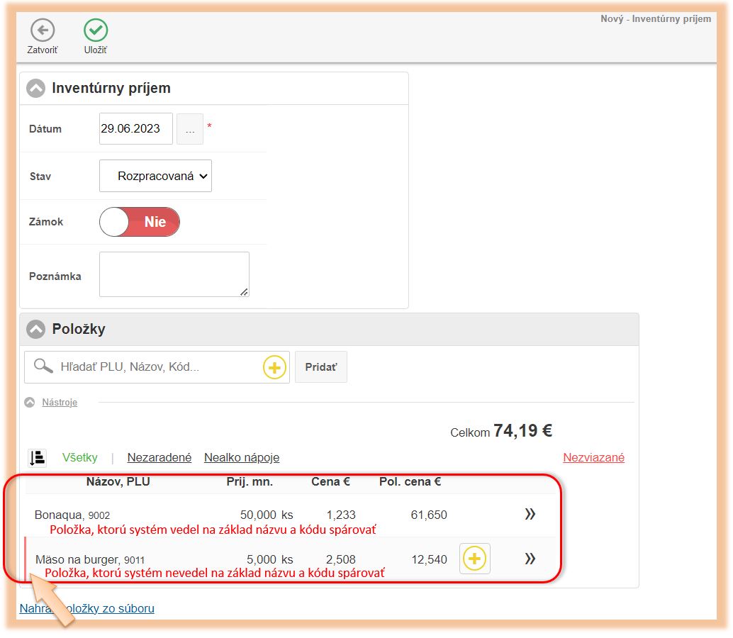 • Položky bez označenia - systém tieto položky vedel na základe kódu spárovať s položkami v danom systéme.